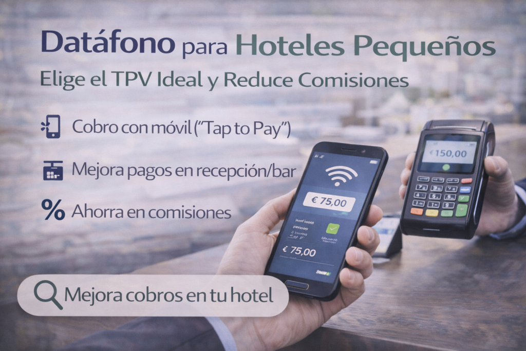 Un hotel pequeño no cobra como una tienda. La operativa en alojamiento incluye depósitos, preautorizaciones, pagos anticipados, cargos adicionales y, muy a menudo, clientes internacionales. Todo esto hace que elegir un datáfono para hoteles pequeños requiera un enfoque distinto.