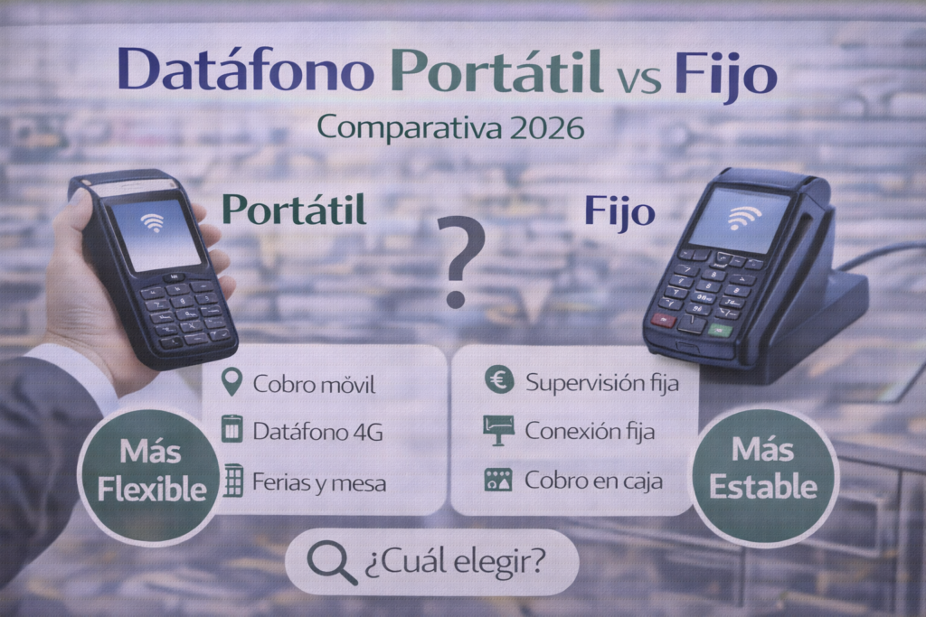 Elegir entre un datáfono portátil vs fijo puede parecer una decisión técnica, pero en realidad afecta directamente a tres factores clave de cualquier negocio: la experiencia del cliente, la velocidad de cobro y el coste total operativo. No es lo mismo cobrar siempre en un punto fijo que poder hacerlo en el lugar donde ocurre la venta. En sectores como hostelería, retail o eventos, esta diferencia se traduce en menos colas, mayor rotación y, en muchos casos, más ventas. Hoy además ya no hablamos solo de “un TPV”. Existen múltiples opciones dentro del ecosistema, desde terminales tradicionales hasta soluciones móviles como Tap to Pay en España, que permiten cobrar directamente desde el smartphone. Para entender el contexto completo y comparar todos los tipos de terminales disponibles, es recomendable revisar el pilar principal de datáfonos para empresas en España, donde se explican las distintas opciones según tipo de negocio. En este análisis vamos a ver qué diferencias importan realmente, qué costes debes considerar y qué opción es más adecuada según tu operativa.Datáfono portátil vs fijo: una decisión que impacta directamente en ventas y experiencia